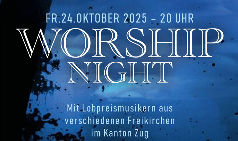 Zum ersten Mal findet die Zuger Worship Night“ statt. Christen, die in verschiedenen Freikirchen im Kanton Zug im Lobpreis mitarbeiten, haben sich zusammengefunden um an einem Abend gemeinsam Gott anzubeten. Alle sind herzlich eingeladen dabei zu sein. Es findet in den Räumlichkeiten der FCG Rotkreuz statt. Mit Lobpreismusikern aus verschiedenen Freikirchen im Kanton Zug. Ort:: Freie…